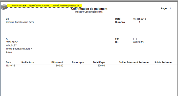 The Maestro Report Viewer allows the printing of the payment confirmation. Depending on management procedures, this document may serve as an internal reference for invoice retention or approval.
