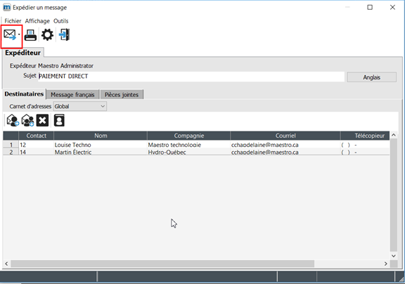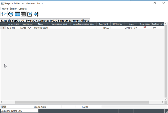 When a disbursement is entered in maestro*, the system differentiates the suppliers that should be paid using a cheque from those that should be paid by bank transfer. During a direct payment, maestro* creates a file that is read and processed by your financial institution.