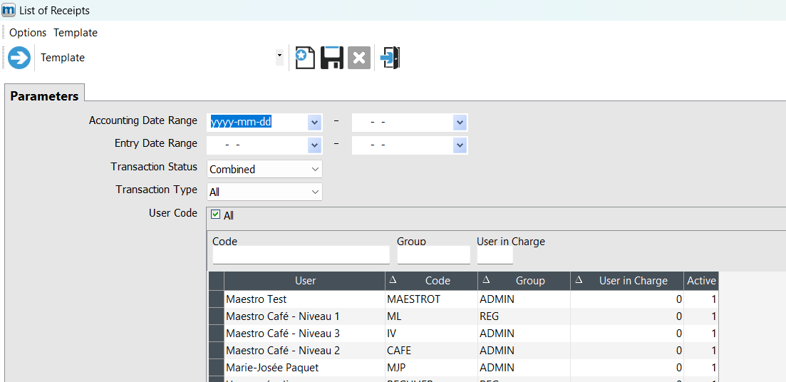This tab displays the payments made (transferred receipts only) on sales invoiced through the different maestro* options.