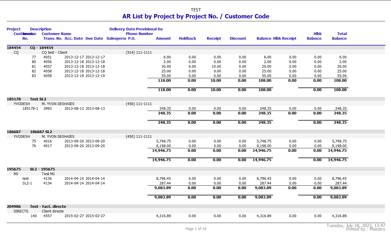 Maestro* offers multiple alternatives when creating a contract and/or billing a customer. This document explains the general operations linked to the basic billing method, the one who offers the most leeway to users: time and material, and equipment invoicing. Also included in this document are explanations on how to enter receipts in maestro*, release holdbacks, account for interests, create liens and releases, and finally, explanations on the different reports allowing to follow-up on operations and accounts linked to sales in the software.