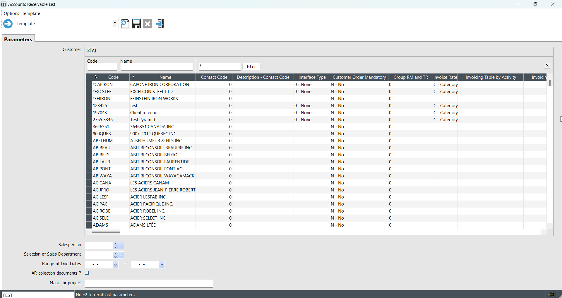 NOTES: Each status form corresponds to those selected for the account receivable in the Define Sales Department option (maestro* > Invoicing > Maintenance > Customer > Define Sales Department).