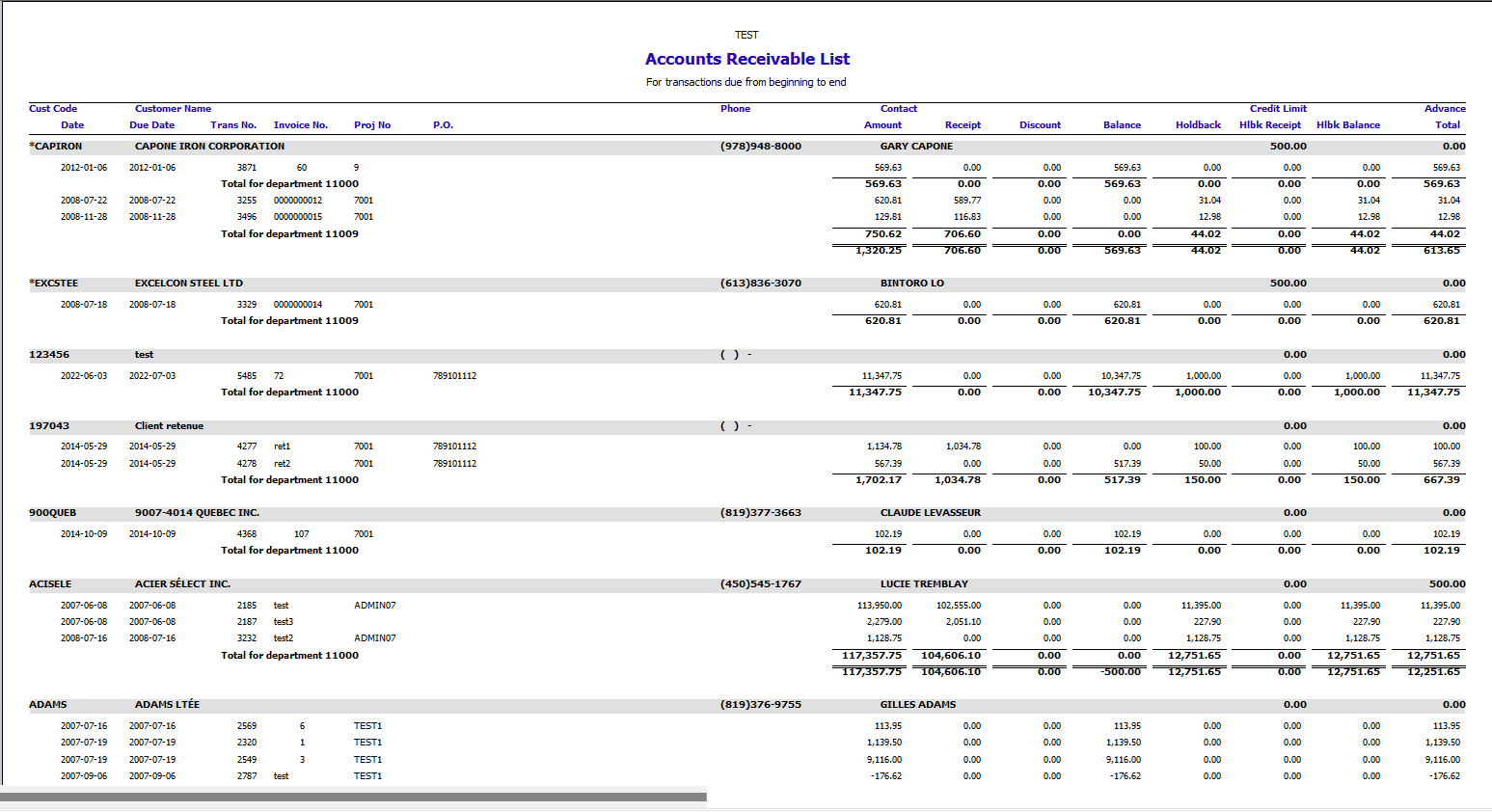 • Accounts Receivable List