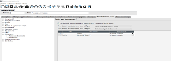 4. Pour la catégorie de document liée au paiement direct, sélectionnez un Type d'accès :