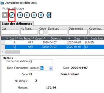 1. Annulez les déboursés : choisissez d'abord la bonne transaction et indiquez la date d'annulation.