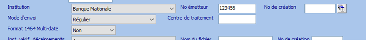 2. Le champ Format 1464 Multi-date permet de déterminer de quelle façon l’institution financière va traiter les déboursés inclus dans un fichier de paiement direct. En indiquant Oui, le fichier de paiement direct sera traité selon les dates des déboursés. En indiquant Non, le fichier de paiement direct sera traité une seule fois par l’institution bancaire en fonction de la date du fichier de préparation et non en date des différentes déboursés.