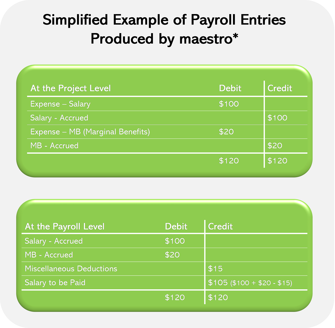 When payroll is processed by an external provider, it often results in delays before the salary costs are linked to projects; the duration of the entire payroll process depends on the provider. To address this situation, Maestro offers an alternative which is to allocate salary expenses to projects progressively, as they are incurred, offset by accrued salary (liability account). In addition to producing an updated financial management at all times, this method enables: